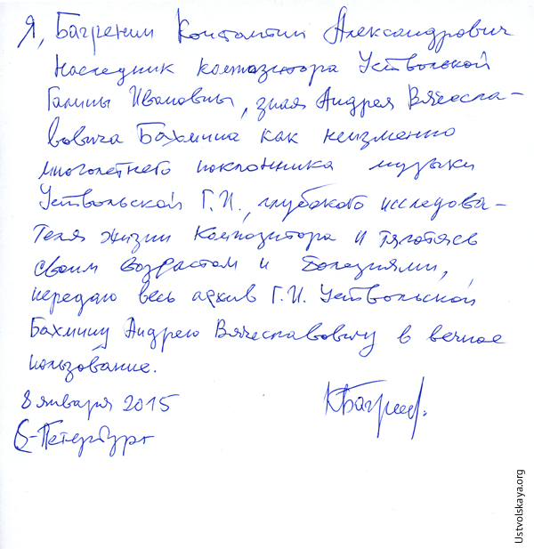 ustvolskaya.org и опубликовал его 11 XII 2009.