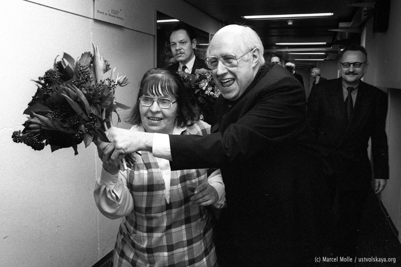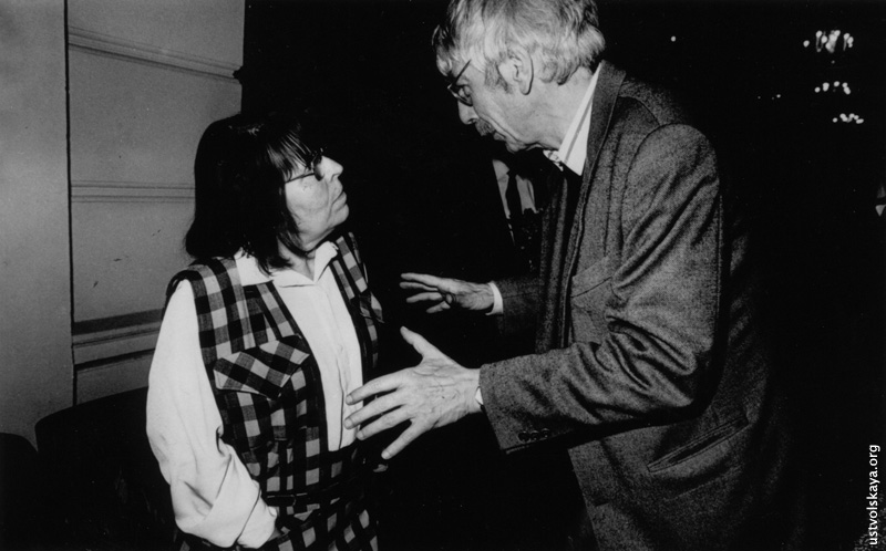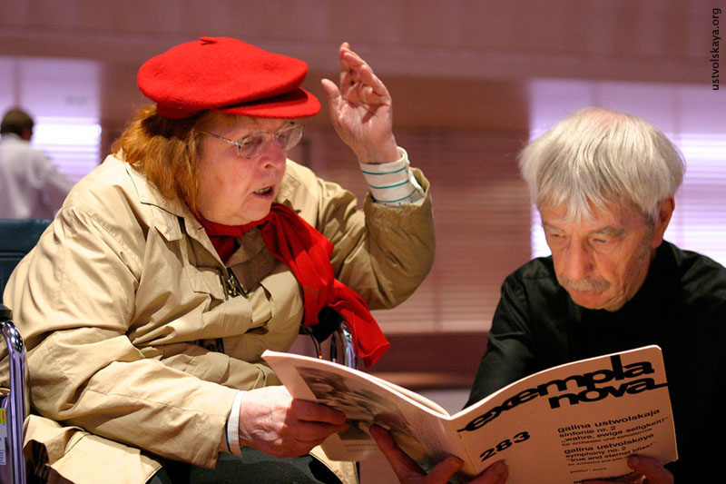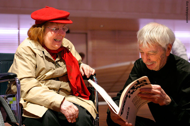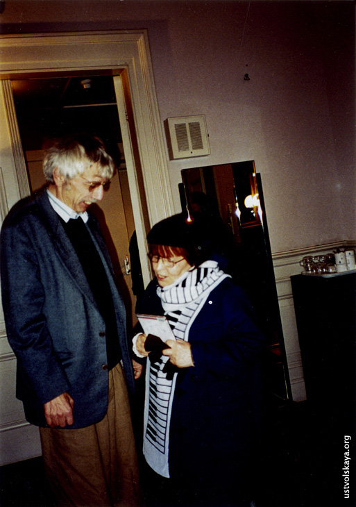 См. также Г. Уствольской аплодируют М. Ростропович и Р. де Леу. Фото: Marcel Molle из газеты De Volkskrant.