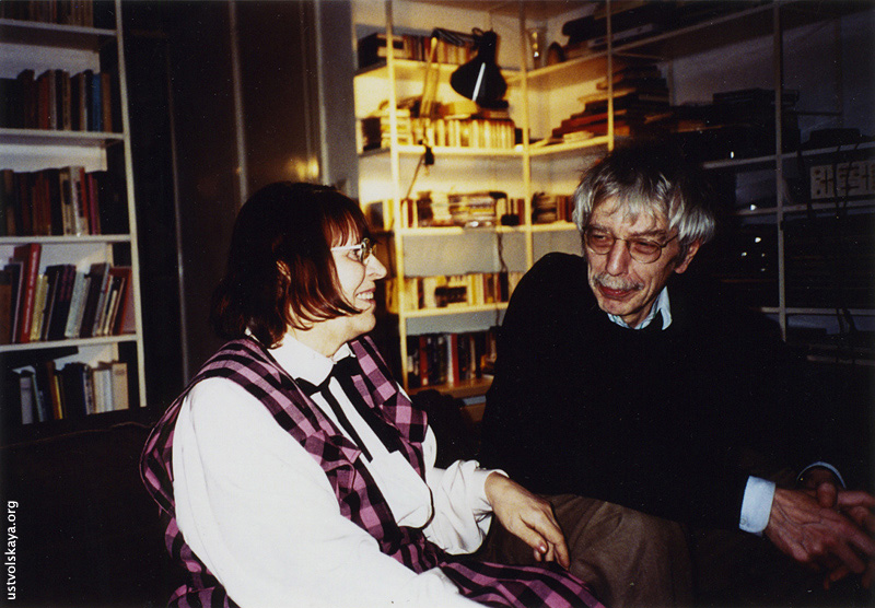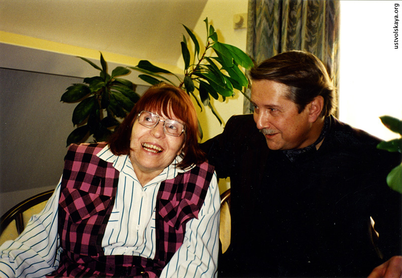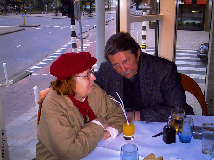 1. Вместе с де Леу у него дома, 1995. Первый раз Уствольская выехала за границу в Амстердам в 1995 г. (она возвращалась туда в 1996, 1997 и 2005 гг.). Фото: Виктор Суслин.