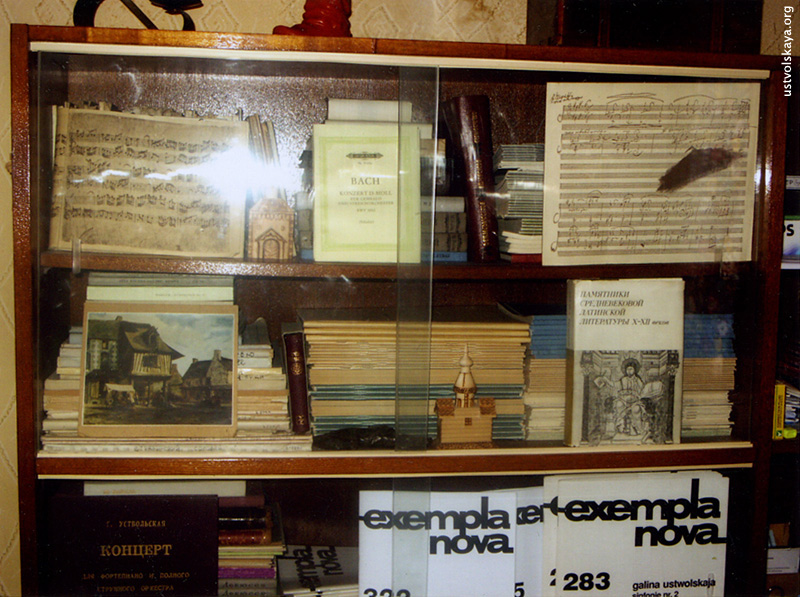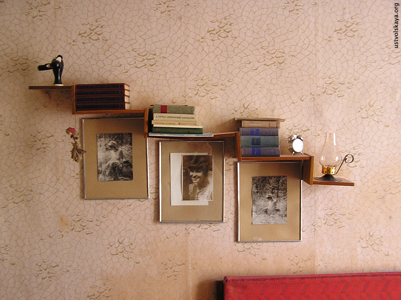 5. Полка в гостиной с томиками Лермонтова и Ли Бо, любимых поэтов Уствольской.