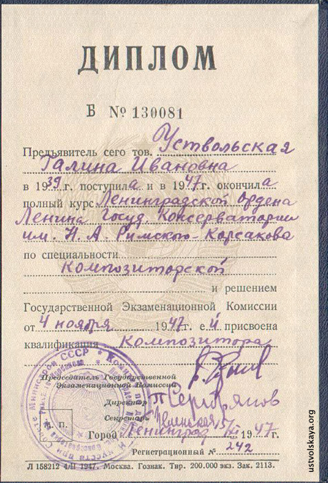 Диплом композитора, 1947