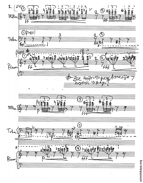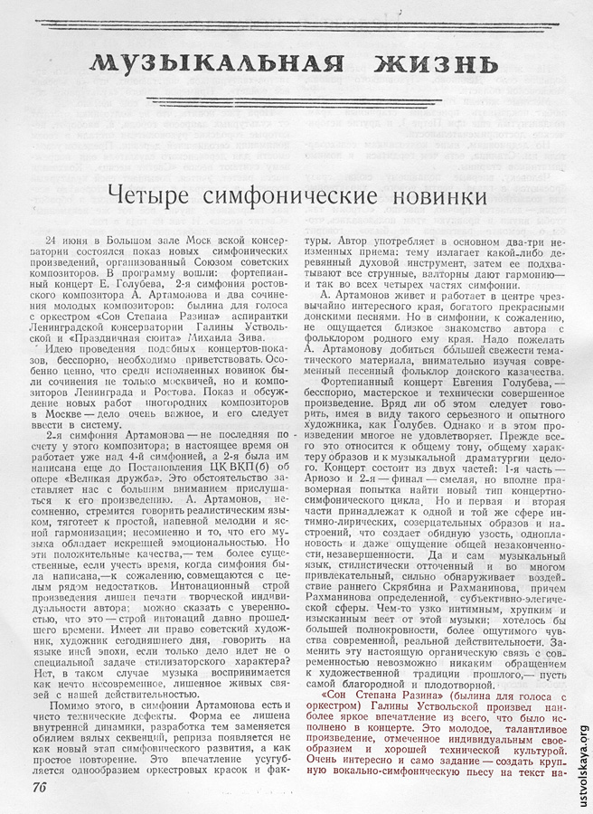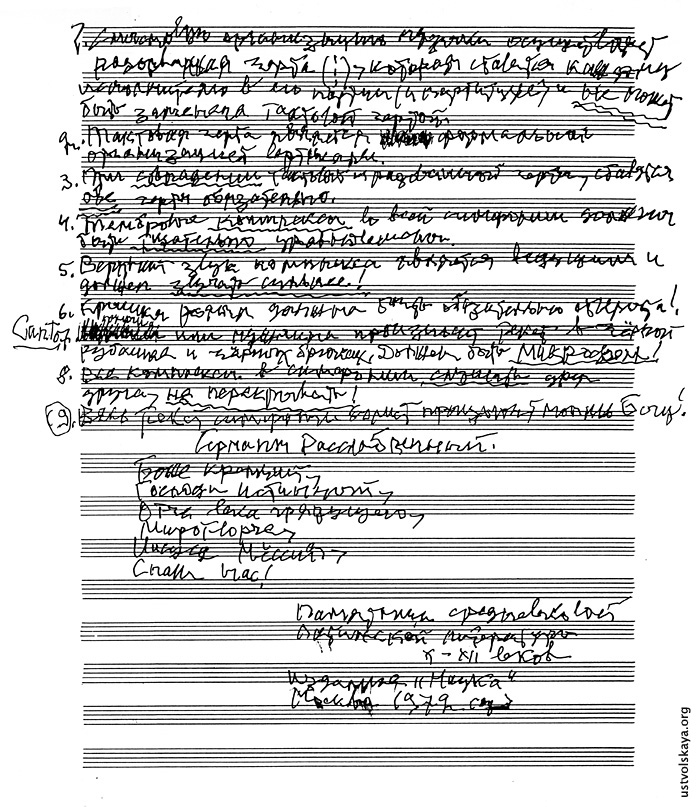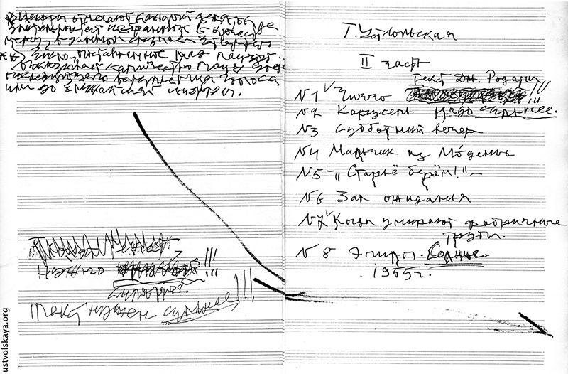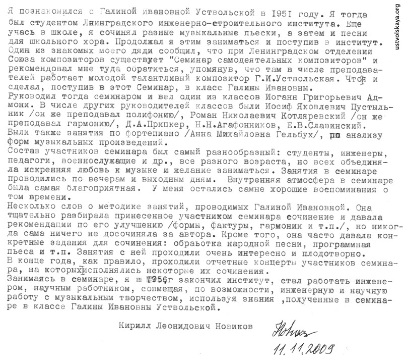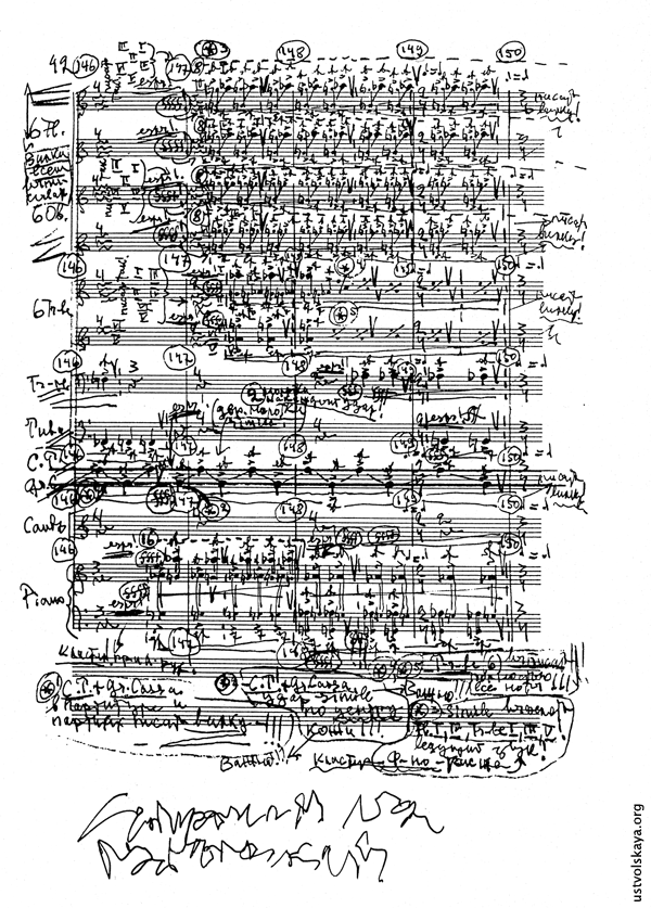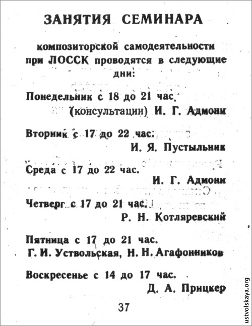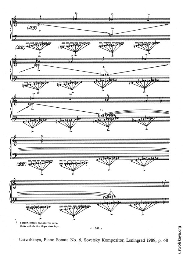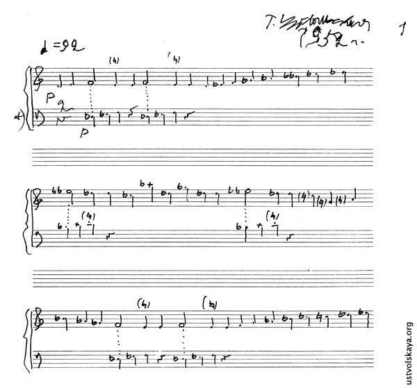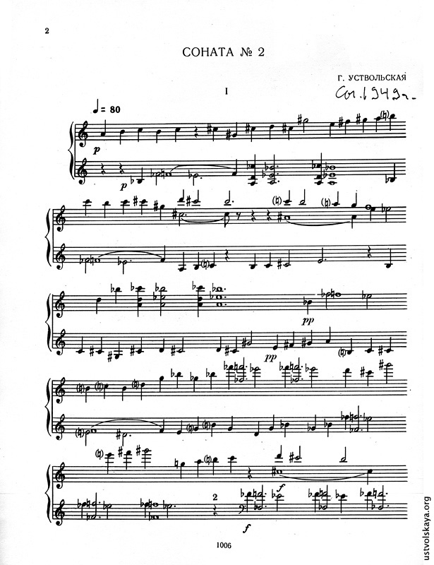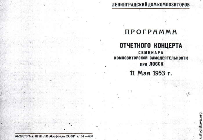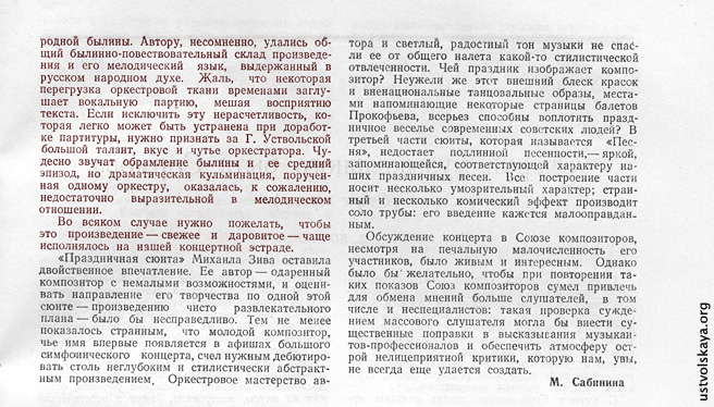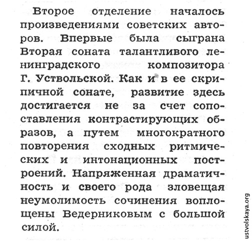 1. Одно из первых упоминаний имени Уствольской в прессе: М. Сабинина, «Советская музыка», № 8, 1949, стр. 76-77