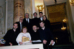 4. Эрмитажный Театр, 2004 г. Cидят слева направо: К. Рыбаков, Г. Уствольская, А. Любимов, А. Тростянский. Cтоят: А.С. Белоненко и В.С. Павлов (два устроителя фестиваля), А. Рудин, немецкие исполнители.